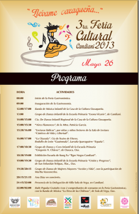 Oaxaca, Oax.- Las regidurías de Cultura, Deporte y Fomento Educativo, y Turismo y Patrimonio Cultural presentaron en conferencia de prensa el proyecto cultural “Llévame oaxaqueña”… III Feria Cultural Candiani 2013, que se llevará a cabo este 26 de mayo, la cual es un trabajo conjunto del ayuntamiento capitalino, la agencia de policía de Candiani y la Casa de la Cultura Oaxaqueña.