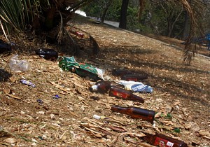 Mientras que en algunos lugares de la capital los niños no cuentan con lugares apropiados para divertirse, en otros sitios como éste, ubicado sobre la Avenida México 68, en inmediaciones de la Colonia Ricardo Flores Magón, de la Agencia Municipal de San Felipe del Agua, varios jóvenes se reúnen a ingerir bebidas embriagantes.