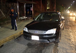 Elementos de las diferentes corporaciones policiacas, fueron movilizados, ya que reportaban que en la Calzada Héroes de Chapultepec, a la altura de las escaleras del barrio de Xochimilco, se encontraba un vehículo varado, Ford tipo Mondeo color negro, con placas de circulación MMA 78-58 del Estado de México.