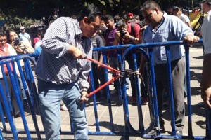 Integrantes de la Sección 22 del Sindicato Nacional de Trabajadores de la Educación (SNTE) quitaron con lujo de violencia las vallas metálicas que fueron instaladas por las autoridades gubernamentales para resguardar el Palacio de Gobierno en contra de marchas y manifestaciones.
