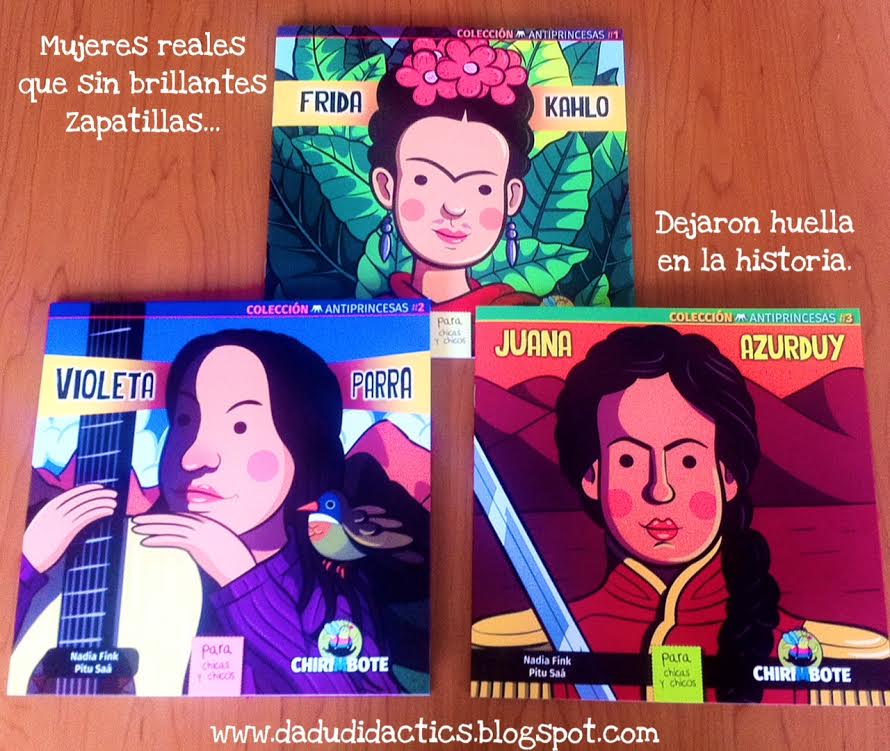 Dándoles ejemplos reales de mujeres que han marcado y cambiado la historia con su talento, inteligencia y determinación como Frida Kahlo, Juana Azurduy y Violeta Parra, por mencionar algunas. Que no necesitaron de andar en zapatillas de cristal ni en vestidos primorosos para ser relevantes en la sociedad de su época.