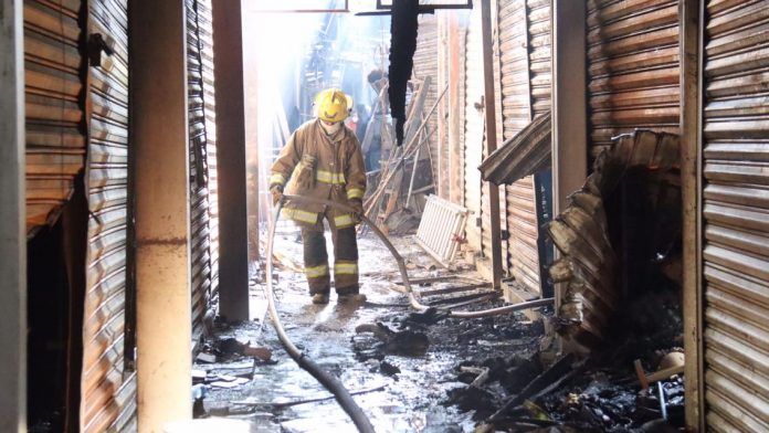 Indicaron que prácticamente apagaron el fuego a cubetazos, y con el apoyo de los comerciantes que ya no acataron la orden de quedarse afuera, pues tenían que actuar al ver su patrimonio destruido.