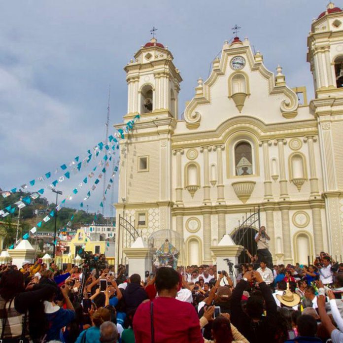 A unos metros del templo, los creyentes católicos se dirigen hacia el templo bajo su propio pie y en ocasiones, de rodillas, a fin de pagar alguna “manda”, es decir, una deuda con la imagen milagrosa.