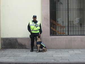 Dentro del programa de Proximidad Social, elementos policiacos vigilan los parques y sitios estratégicos del primer cuadro de la ciudad, acompañados de elementos del cuerpo canino.